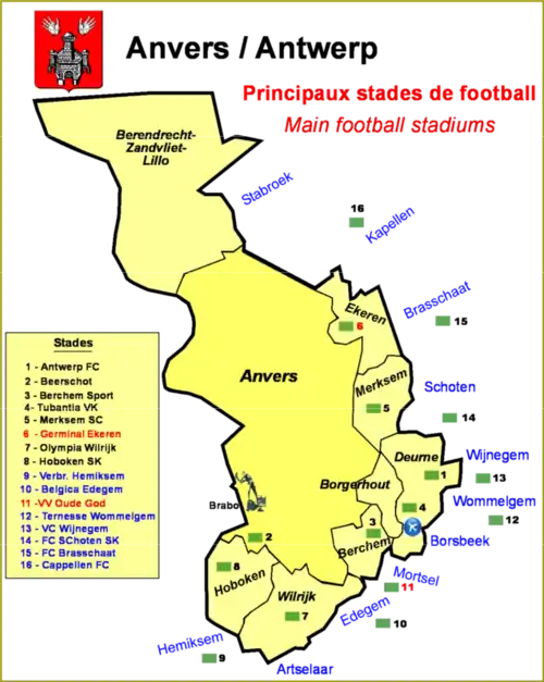 Localisation des clubs anversois
