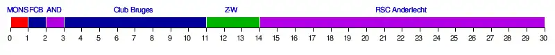 | R. SC Anderlecht | 6-1 | 2-2 | 5-0 | 2-2 | 1-0 | 2-1 | 3-0 | 1-0 | 2-1 | 1-0 | 4-1 | 0-1 | 2-1 | 2-0 | 2-0 | |