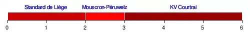 | 3 | Mouscron-Péruwelz | 5 | 6 | 3 | -3 | Mouscron-Péruwelz | 2-3 | 2-0 | 0-0 | |