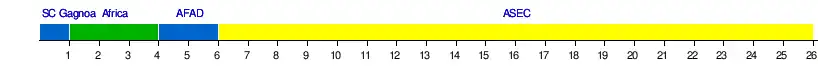 | AFAD Djékanou | 3 | 2 | 2 | 2 | 1 | 1 | 3 | 2 | 2 | 2 | 2 | 2 | 2 | 3 | 2 | 2 | 4 | 4 | 3 | 4 | 5 | 5 | 5 | 5 | 5 | 5 | 2 | |