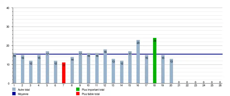| Journées → | 1 | 2 | 3 | 4 | 5 | 6 | 7 | 8 | 9 | 10 | 11 | 12 | 13 | 14 | 15 | 16 | 17 | 18 | 19 | 20 | 21 | 22 | 23 | 24 | 25 | 26 | En tête | Relégable |