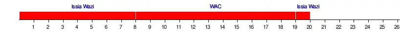 | Issia Wazi | 14 | 14 | 14 | 14 | 14 | 14 | 14 | 14 | 13 | 13 | 13 | 13 | 13 | 13 | 13 | 13 | 13 | 13 | 13 | 14 | 20 | |||||||