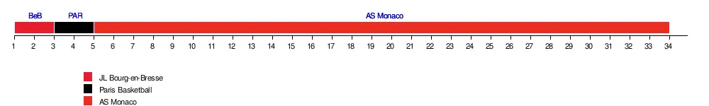 | Bourg-en-Bresse | 81-66 | 94-73 | 90-67 | 78-80 | 66-60 | 90-82 | 86-67 | 106-74 | 77-67 | 74-80 | 74-70 | 103-78 | 85-67 | 83-81 | 81-84 | 86-71 | 77-74 | |