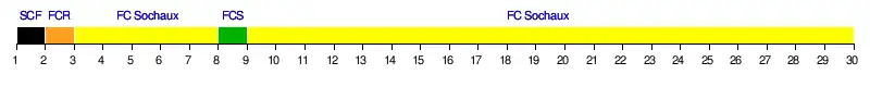 | Résultats (▼dom., ►ext.) | FCA | ASC | SCF | RCL | OL | OM | FCM | RCP | RSO | EACR | RCR | FCR | FCS | FCSM | RCS | USVA |