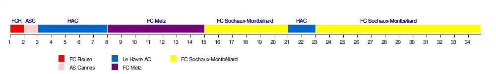 | Le Havre AC | 3-2 | 1-2 | 1-0 | 1-2 | 0-0 | 4-3 | 3-0 | 3-5 | 0-1 | 2-3 | 0-0 | 4-1 | 1-0 | 0-2 | 4-1 | 1-0 | 3-0 | |