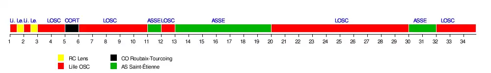 | Lille OSC | 5-0 | 5-1 | 1-0 | 3-1 | 4-0 | 4-4 | 7-0 | 0-1 | 3-1 | 3-0 | 2-5 | 0-2 | 2-2 | 8-0 | 5-2 | 3-1 | 4-1 | |
