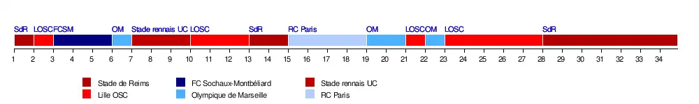 | Stade de Reims | 1-0 | 3-0 | 2-2 | 3-0 | 4-2 | 1-0 | 5-0 | 2-2 | 1-0 | 1-0 | 1-1 | 6-0 | 3-0 | 4-0 | 0-3 | 2-2 | 4-0 | |