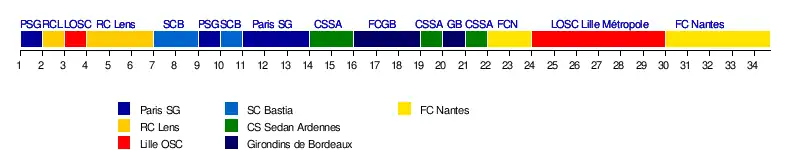FC NantesLOSC Lille MétropoleFC NantesClub sportif Sedan ArdennesFootball Club des Girondins de BordeauxClub sportif Sedan ArdennesFootball Club des Girondins de BordeauxClub sportif Sedan ArdennesParis Saint-Germain Football ClubSC BastiaParis Saint-Germain Football ClubSC BastiaRC LensLOSC Lille MétropoleRC LensParis Saint-Germain Football Club