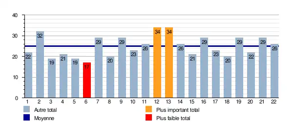 | FF Issy | 8 | 10 | 11 | 11 | 12 | 12 | 11 | 11 | 11 | 12 | 11 | 11 | 11 | 11 | 11 | 12 | 11 | 11 | 11 | 11 | 11 | 11 |