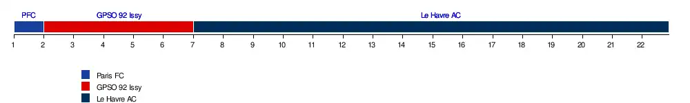 | Paris FC | 11 | 5 | 7 | 10 | 5 | 6 | 5 | 5 | 6 | 7 | 6 | 5 | 6 | 7 | 6 | 4 | 4 | 4 | 7 | 4 | 4 | 4 | 1 | |