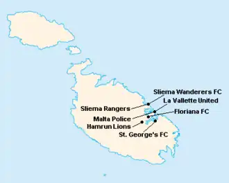 L'île de Malte étant relativement petite, les clubs évoluent tous au stade National Ta'Qali (17 400 places). Certains cependant ont leur propre enceinte qu'ils peuvent éventuellement utiliser.