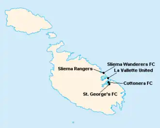 L'île de Malte étant relativement petite, les clubs évoluent tous au stade National Ta'Qali (17 400 places). Certains cependant ont leur propre enceinte qu'ils peuvent éventuellement utiliser.