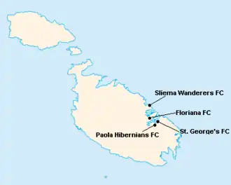 L'île de Malte étant relativement petite, les clubs évoluent tous au stade National Ta'Qali (17 400 places). Certain cependant ont leur propre enceinte qu'ils peuvent éventuellement utiliser.