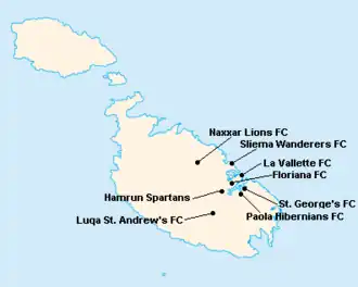 L'île de Malte étant relativement petite, les clubs évoluent tous au stade National Ta'Qali (17 400 places). Certain cependant ont leur propre enceinte qu'ils peuvent éventuellement utiliser.