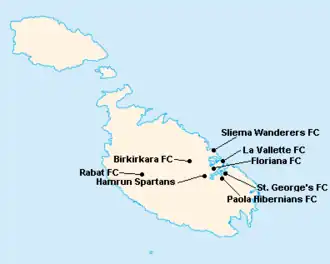 L'île de Malte étant relativement petite, les clubs évoluent tous au stade National Ta'Qali (17 400 places). Certain cependant ont leur propre enceinte qu'ils peuvent éventuellement utiliser.