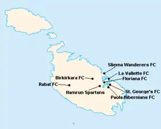 L'île de Malte étant relativement petite, les clubs évoluent tous au stade National Ta'Qali (17 400 places). Certain cependant ont leur propre enceinte qu'ils peuvent éventuellement utiliser.