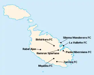 L'île de Malte étant relativement petite, les clubs évoluent tous au stade National Ta'Qali (17 400 places). Certain cependant ont leur propre enceinte qu'ils peuvent éventuellement utiliser.