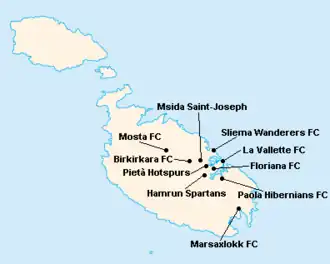 L'île de Malte étant relativement petite, les clubs évoluent tous au stade National Ta'Qali (17 400 places). Certain cependant ont leur propre enceinte qu'ils peuvent éventuellement utiliser.