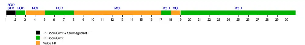 | Molde | 4 | 5 | 1 | 1 | 2 | 4 | 3 | 1 | 1 | 1 | 1 | 1 | 1 | 1 | 1 | 1 | 2 | 1 | 2 | 2 | 2 | 2 | 2 | 2 | 2 | 2 | 2 | 2 | 2 | 2 | 12 | 0 |