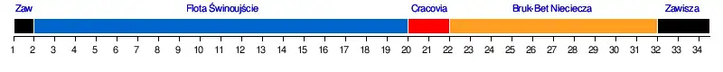 | Cracovia | 1-0 | 2-1 | 0-2 | 1-1 | 2-0 | 1-0 | 0-1 | 2-2 | 4-2 | 1-1 | 1-0 | 0-0 | 2-0 | 1-0 | 1-0 | 2-1 | 3-1 | |