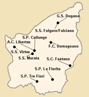 | SP Domagnano (T) (C) | 1 | SP Domagnano (T) (C) | 1 | SP Cosmos | 1 5 | SP Cosmos | 3 | ||||||||||||||||||||||