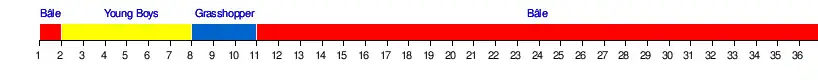 | Bâle | 1 | 2 | 3 | 3 | 4 | 4 | 3 | 3 | 2 | 2 | 1 | 1 | 1 | 1 | 1 | 1 | 1 | 1 | 1 | 1 | 1 | 1 | 1 | 1 | 1 | 1 | 1 | 1 | 1 | 1 | 1 | 1 | 1 | 1 | 1 | 1 |