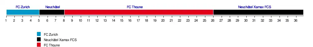 | Thoune | 4 | 6 | 8 | 4 | 6 | 7 | 9 | 9 | 10 | 10 | 10 | 10 | 10 | 10 | 10 | 10 | 10 | 10 | 10 | 10 | 10 | 10 | 10 | 10 | 10 | 10 | 8 | 8 | 9 | 9 | 9 | 9 | 9 | 9 | 8 | 9 | 9 | 18 | |