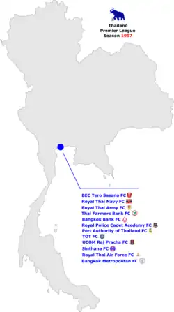 La saison 1997 du Championnat de Thaïlande de football est la 2eédition du championnat de première division en Thaïlande. Les douze meilleurs clubs du pays sont regroupés au sein d'une poule unique, la Thailand Soccer League, où ils s'affrontent deux fois au cours de la saison, à domicile et à l'extérieur. En fin de saison, le dernier du classement est relégué tandis que l'avant-dernier dispute un barrage de promotion-relégation face au 2e de deuxième division.