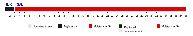 | Beşiktaş JK | 1 | 1 | 4-1 | 3 | 3 | 3 | 3 | 3 | 2 | 4 | 4 | 5 | 6 | 5 | 5 | 6 | 6 | 6 | 6 | 6 | 6 | 7-1 | 6 | 5 | 4 | 4 | 4 | 4 | 4 | 4 | 5 | 5 | 4 | 4 | 3 | 4 | 4 | 2 | ||