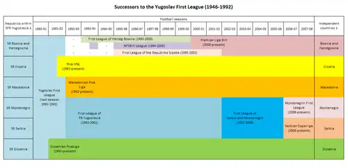Le championnat de la République fédérale de Yougoslavie, mis en place dès 1992, est considéré par l'UEFA comme le successeur officiel du championnat yougoslave. Celui-ci devient en 2003 le championnat de la Serbie-et-Monténégro jusqu'à la dissolution du pays en 2006. C'est par la suite le championnat serbe qui lui succède.