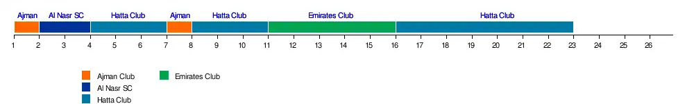 | Ajman Club | 0-4 | 2-0 | 3-5 | 2-0 | 0-3 | 0-1 | 1-4 | J13 | 2-0 | 1-1 | 3-0 | 0-3 | J25 | |