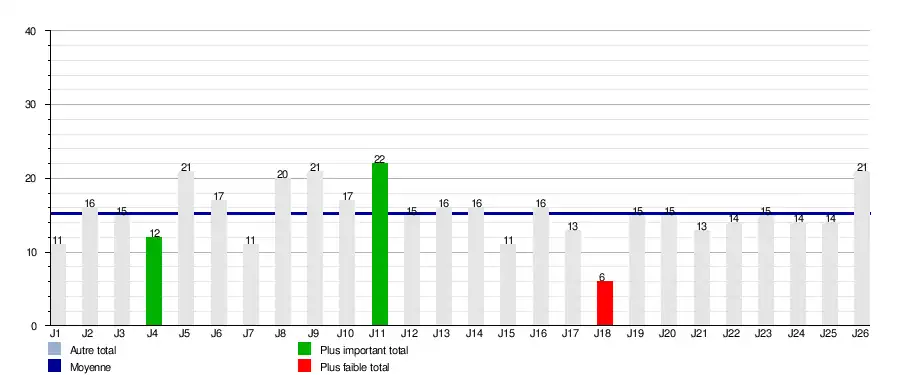 Ce graphique représente le nombre de buts marqués lors de chaque journée.
