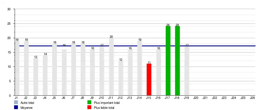 328 buts marqués en 19 journées complètes, soit 17.26 but par journée.