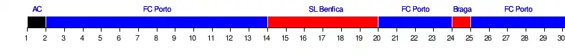 | FC Porto | 3 | 1 | 1 | 1 | 1 | 1 | 1 | 1 | 1 | 1 | 1 | 1 | 1 | 2 | 2 | 2 | 2 | 2 | 2 | 1 | 1 | 1 | 1 | 2 | 1 | 1 | 1 | 1 | 1 | 1 |