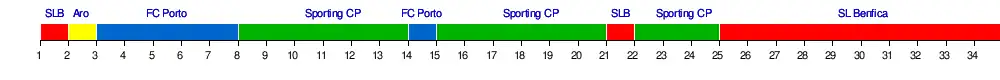 | Benfica | 1 | 8 | 4 | 3 | 3 | 3 | 5 | 8 | 5 | 4 | 3 | 3 | 3 | 3 | 3 | 3 | 3 | 2 | 2 | 2 | 1 | 2 | 2 | 2 | 1 | 1 | 1 | 1 | 1 | 1 | 1 | 1 | 1 | 1 |