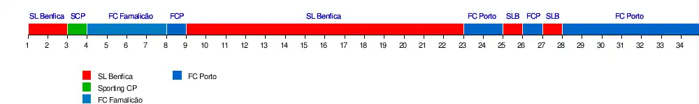 Le tournant du championnat se déroulait déjà lors de la vingtième journée : le choc entre Porto et Benfica dans l'antre des bleus et blancs était d'une importance cruciale. Les rouges et blancs pouvait creuser un écart quasiment définitif sur leur poursuivant du nord, avec un gouffre de dix points en cas de victoire. Mais, contre toute attente, ce choc a opposé un Benfica timoré face à un Porto conquérant, avec une victoire 3-2, dans un match riche en rebondissements. Finalement, ce n'était plus dix points, mais simplement quatre qui séparaient les deux rivaux. Et cet écart sera finalement comblée à la vingt-troisième journée, avec un nouveau leader : Porto, un point devant Benfica. Inespéré pour les Dragons, et encore impensable pour les Aigles, quelques semaines plus tôt. Le schéma de la saison précédente semblait se répéter, mais cette fois-ci en faveur de Porto. La fin de saison était relancée et s'annonçait pleine de surprise...