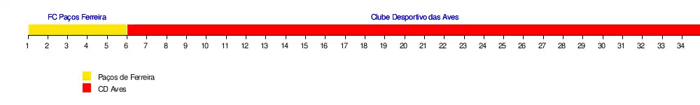 | CD Aves | 2017 | 5 | 14e | 2019 | Estádio do Clube Desportivo das Aves | 5 441 | Vila das Aves | 5 | |