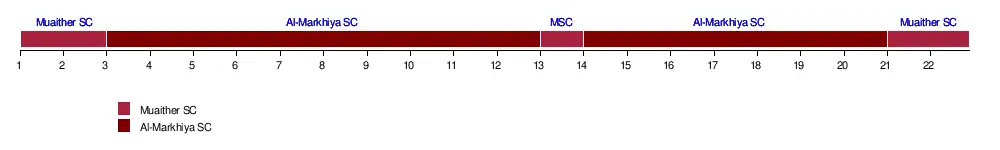 | Al-Markhiya | 10 | 11 | 12 | 12 | 12 | 12 | 12 | 12 | 12 | 12 | 12 | 12 | 11 | 12 | 12 | 12 | 12 | 12 | 12 | 12 | 11 | 11 | 4 | 17 | |