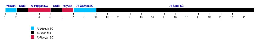 | Qatar SC | 5 | 8 | 8 | 10 | 11 | 8 | 7 | 8 | 10 | 8 | 8 | 8 | 8 | 9 | 9 | 10 | 10 | 10 | 10 | 10 | 8 | 8 | 1 | ||