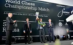 Le Championnat du monde d'échecs 2014 est l'édition 2014 du championnat du monde du jeu d'échecs. Cette compétition organisée par la Fédération internationale des échecs opposa en novembre 2014, dans la ville russe de Sotchi[1], le Norvégien Magnus Carlsen, no 1 mondial et champion du monde en titre, à l'Indien Viswanathan Anand, no 6 mondial et prédécesseur de Carlsen en tant que champion du monde.