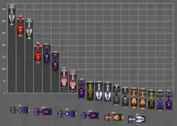 - Carburant : la quantité maximum de carburant embarqué passe de 100 à 105 kg pour compenser les changements de poids et de dimension des monoplaces[35].