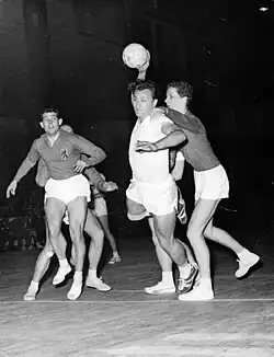 pour les Amériques, seuls l'Argentine (1954) et le Brésil (1954) sont affiliés à l'IHF, mais le premier match des Argentins en handball à 7 n'a lieu qu'en 1971[7]