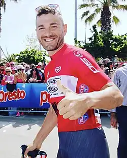 Eugert Zhupa vêtu de son maillot de champion d'Albanie lors du Tour d'Italie 2017