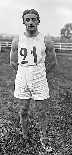 - ↑ René Mourlon, deuxième de l'épreuve du 100 m derrière l'Américain Andrew Black est désigné champion de France.