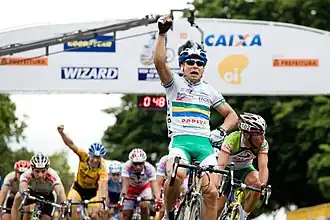 Nilceu dos Santos vainqueur de la Copa América de Ciclismo 2008 avec son maillot de champion du Brésil