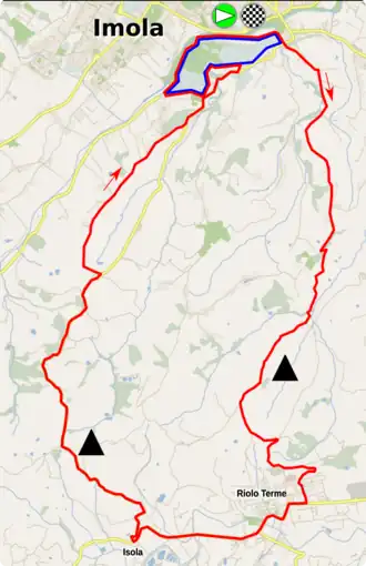 L'Autodromo a déjà accueilli plusieurs arrivées d'étapes du Tour d'Italie. Imola avait accueilli les mondiaux en 1968 qui avaient vu la victoire de l'Italien Vittorio Adorni chez les hommes[7] et de la Néerlandaise Keetie van Oosten-Hage chez les femmes[8],[9].