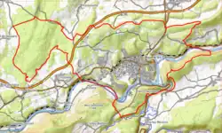 L'occupation des sols de la commune, telle qu'elle ressort de la base de données européenne d’occupation biophysique des sols Corine Land Cover (CLC), est marquée par l'importance des forêts et milieux semi-naturels (57,3 % en 2018), une proportion identique à celle de 1990 (57,3 %). La répartition détaillée en 2018 est la suivante : forêts (55,8 %), zones agricoles hétérogènes (18,7 %), prairies (12,4 %), zones urbanisées (10,2 %), milieux à végétation arbustive et/ou herbacée (1,5 %), zones industrielles ou commerciales et réseaux de communication (1,4 %)[14]. L'évolution de l’occupation des sols de la commune et de ses infrastructures peut être observée sur les différentes représentations cartographiques du territoire : la carte de Cassini (XVIIIe siècle), la carte d'état-major (1820-1866) et les cartes ou photos aériennes de l'IGN pour la période actuelle (1950 à aujourd'hui)[Carte 1].