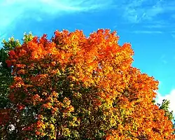 Durant les mois d'automne, des arbres feuillus et des fougères connaissent un changement de couleur des feuilles et des frondes avant qu'elles ne tombent. Ce changement de couleurs, qui existe chez beaucoup d'arbres des régions tempérées[2], est souvent appelé couleurs automnales. Il est associé au dernier stade du développement de la feuille, la sénescence qui se caractérise par de véritables bouleversements biochimiques.