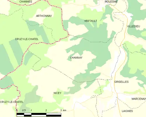 - ↑ « Orthodromie entre Channay et Cruzy-le-Châtel », sur fr.distance.to (consulté le ).