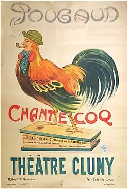 - Chantecoq, adaptation d'Arthur Bernède du roman éponyme en cinq actes et sept tableaux, présentée au Théâtre de Cluny en 1917, avec Désiré Pougaud dans le rôle-titre[8].